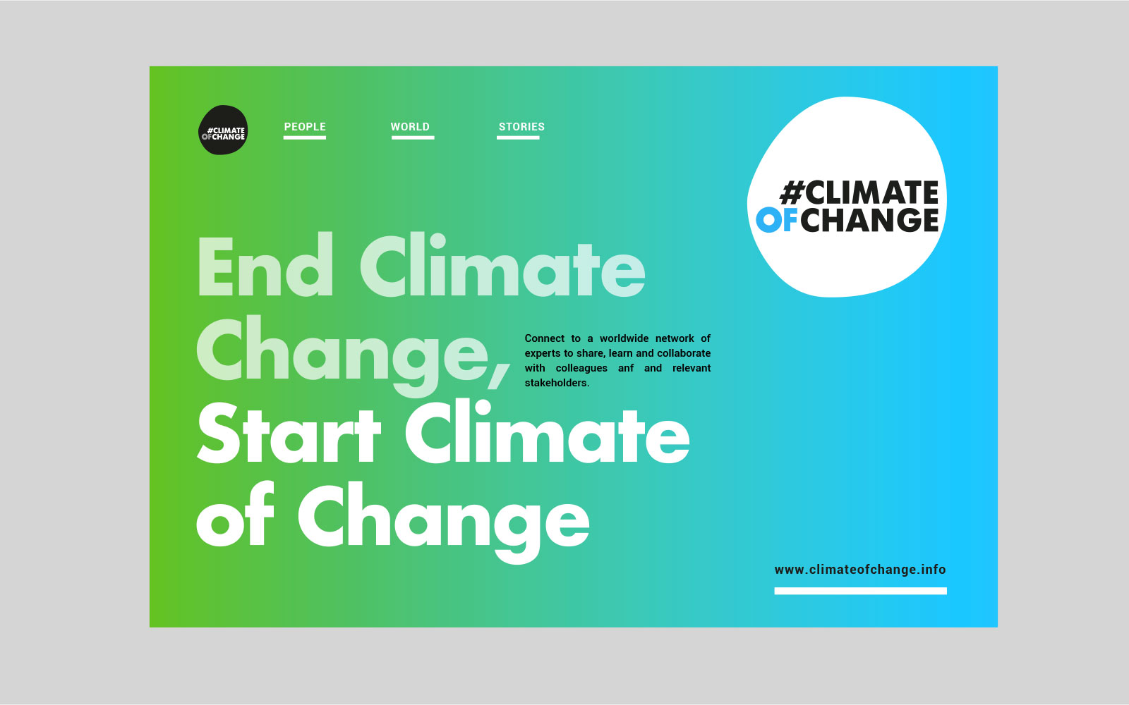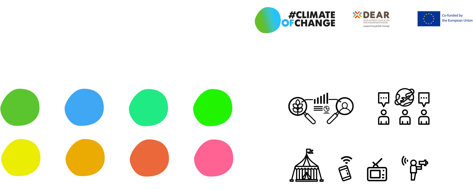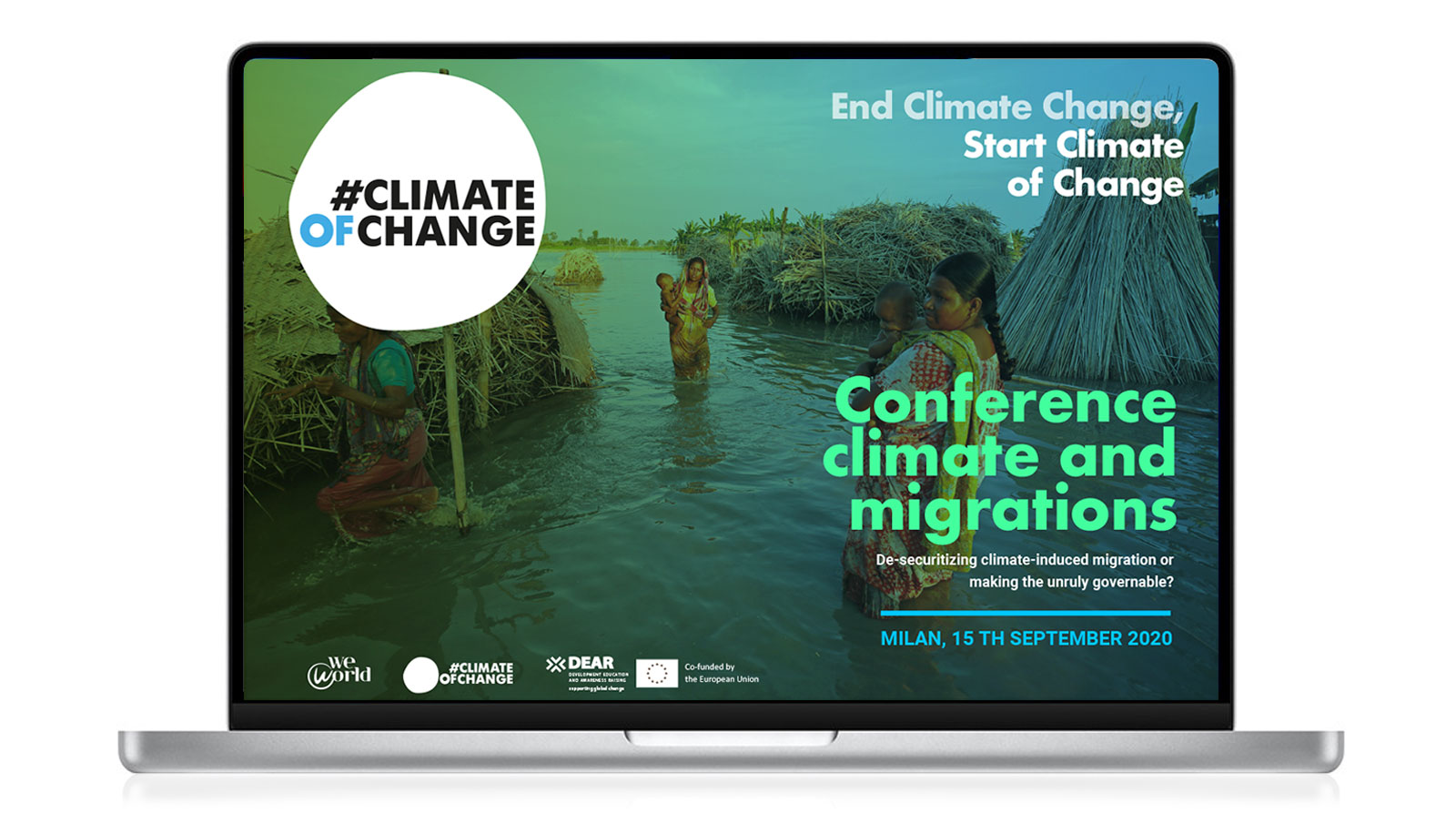 #ClimateofChange sostiene progetti sulla relazione tra crisi climatica e migrazioni, con uno sguardo globale e trasversale su temi sociali ed economici, che coinvolgono giovani cittadini dell’Unione Europea. Ne abbiamo progettato il concept comunicativo e l’identità visiva. Il centro della campagna di comunicazione è uno spettacolo circense incentrato sui temi del Progetto che in un tour pan-europeo ha attraversato le principali piazze d’Europa (spettacolo realizzato da Magda Circo e Flic Scuola di Circo). L’identità visiva è semplice e fluida come una goccia d’acqua: un sistema nel quale è possibile muoversi in varie direzioni. Il progetto coinvolge 16 organizzazioni europee, di cui è capofila WeWorld Onlus ed è cofinanziato dalla Commissione Europea nell’ambito del Programma DEAR (Development Education and Awareness Raising).
