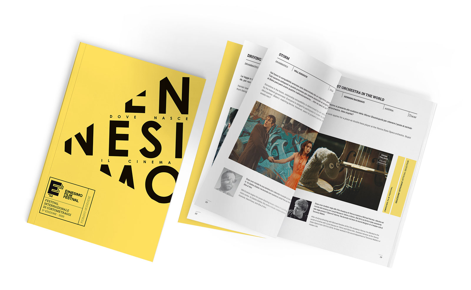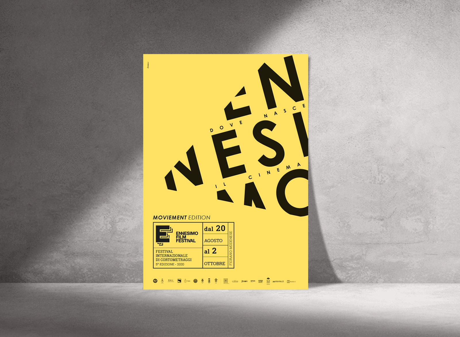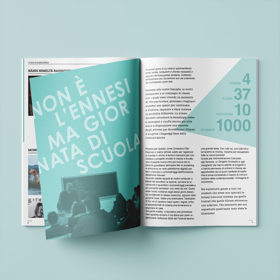 Ennesimo Film Festival è un festival internazionale di cortometraggi nato nel 2016 che ha luogo ogni anno a Fiorano Modenese. L’obiettivo principale del festival è trasformare il modo con cui le persone osservano il mondo, attraverso il cinema. L’identità visiva della quinta edizione è focalizzata sull’andamento conico della proiezione per svelare e al tempo stesso nascondere, esattamente come fa l’arte del regista che ad ogni inquadratura seleziona cosa mostrare e cosa celare. Il programma Ennesimo Academy è un percorso di educazione all’immagine che fornisce agli studenti una “cassetta degli attrezzi” per decodificare i filmati cui sono sottoposti quotidianamente e analizzarli in modo critico e collettivo. Anche la brochure Ennesimo Academy riprende la visual identity studiata per il festival.