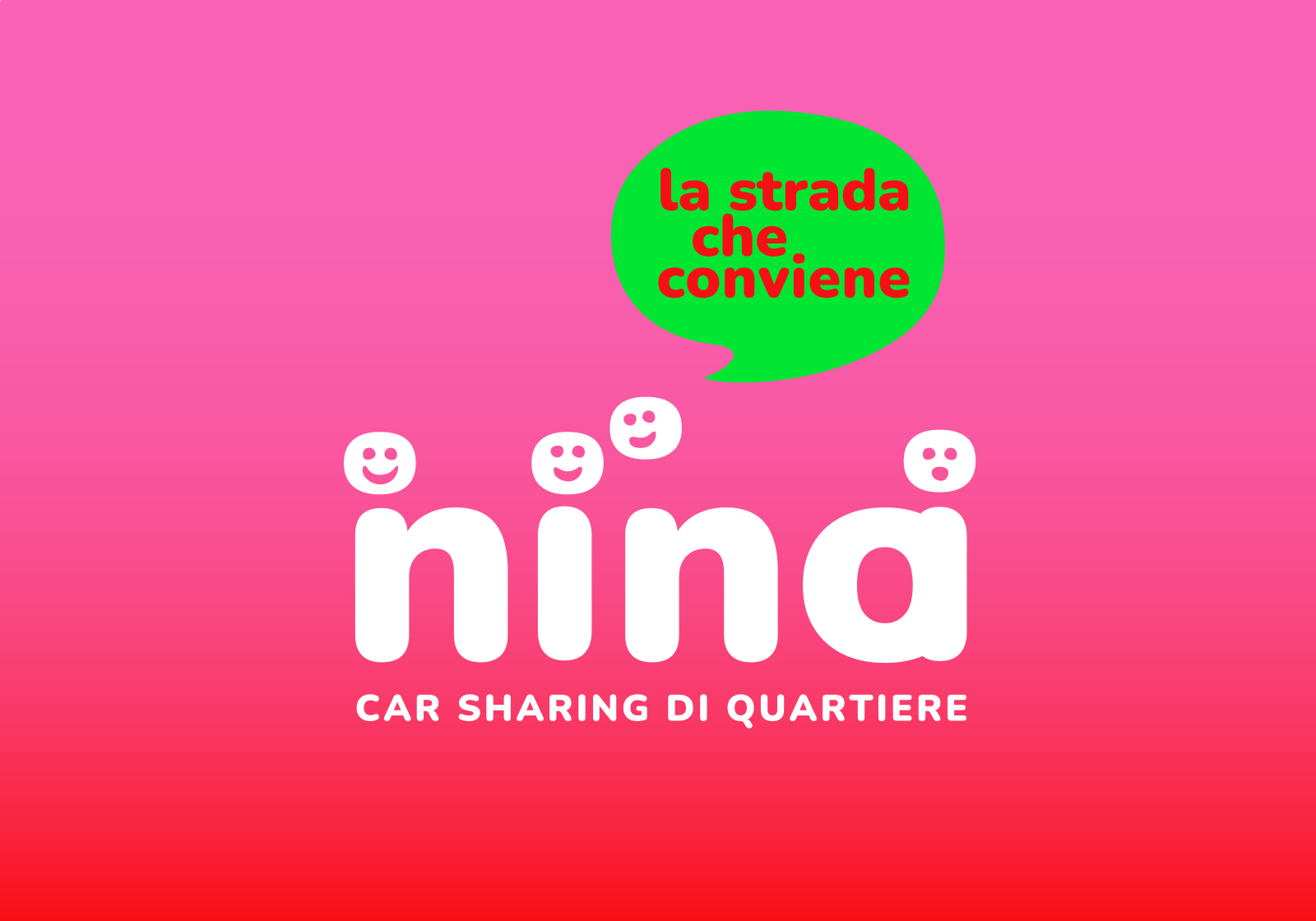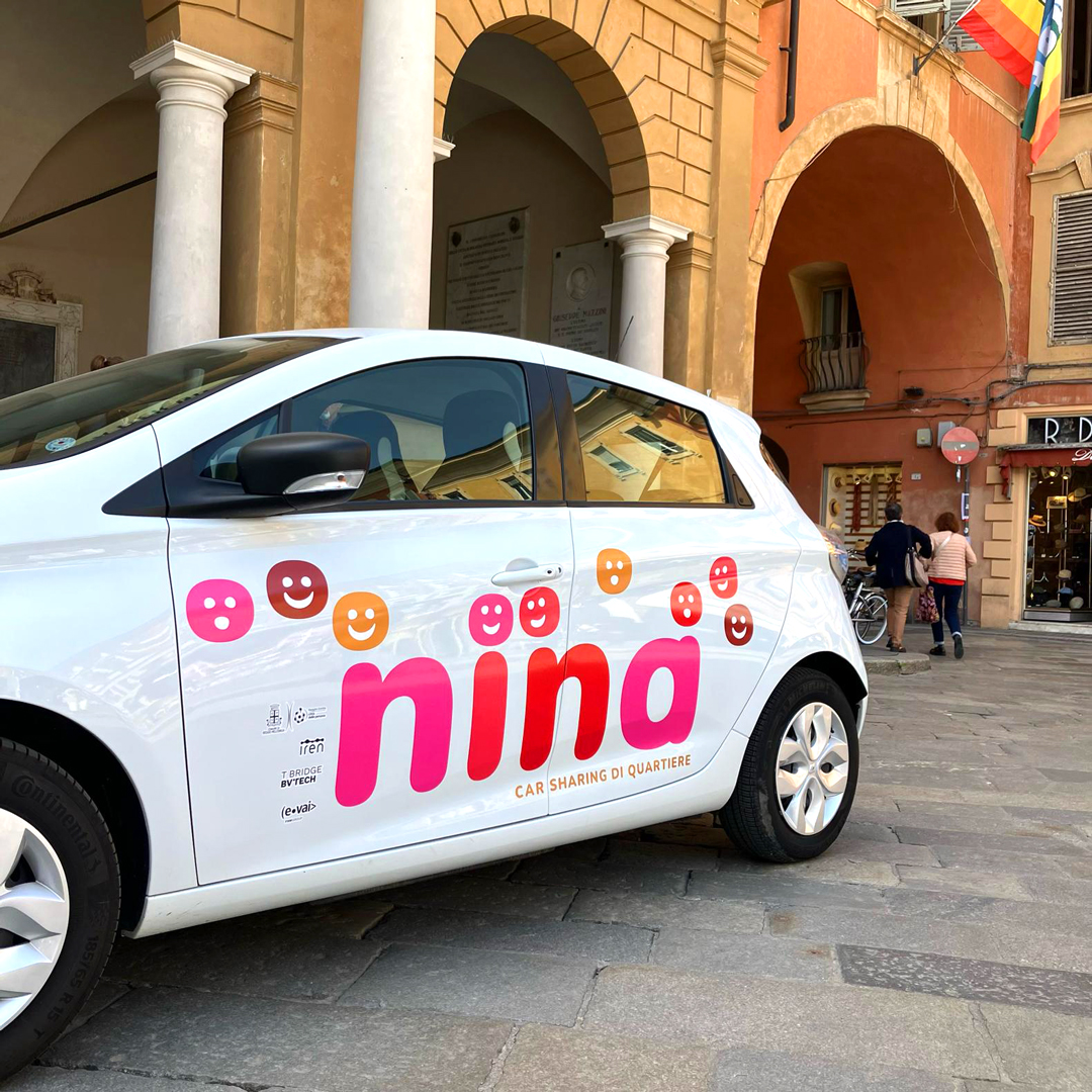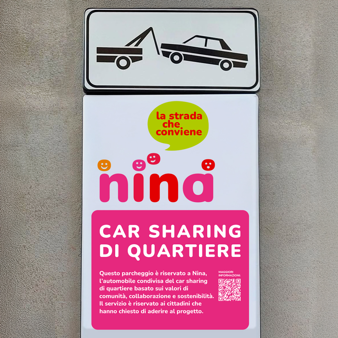 La collaborazione del Comune di Reggio Emilia con gruppi di cittadini ha dato vita alla sperimentazione di questa nuova forma di mobilità collaborativa ed ecologica. Nina è un’auto condivisa e autogestita a disposizione di un gruppi auto-organizzati di cittadini. Un mezzo completamente elettrico fornito dal Comune con colonnina di ricarica e apposito spazio di parcheggio. Il nome Nina è confidenziale, familiare, comunica senso di appartenenza. Anche l’identità visiva, in cui tanti volti diversificati completano il logo, comunica dinamismo e inclusività.