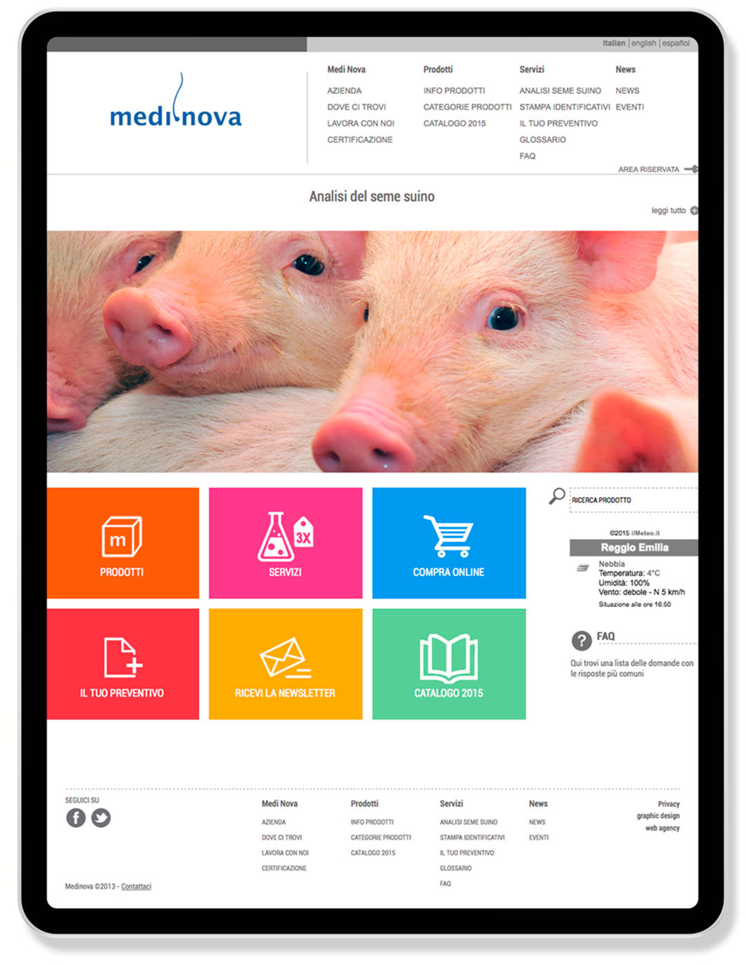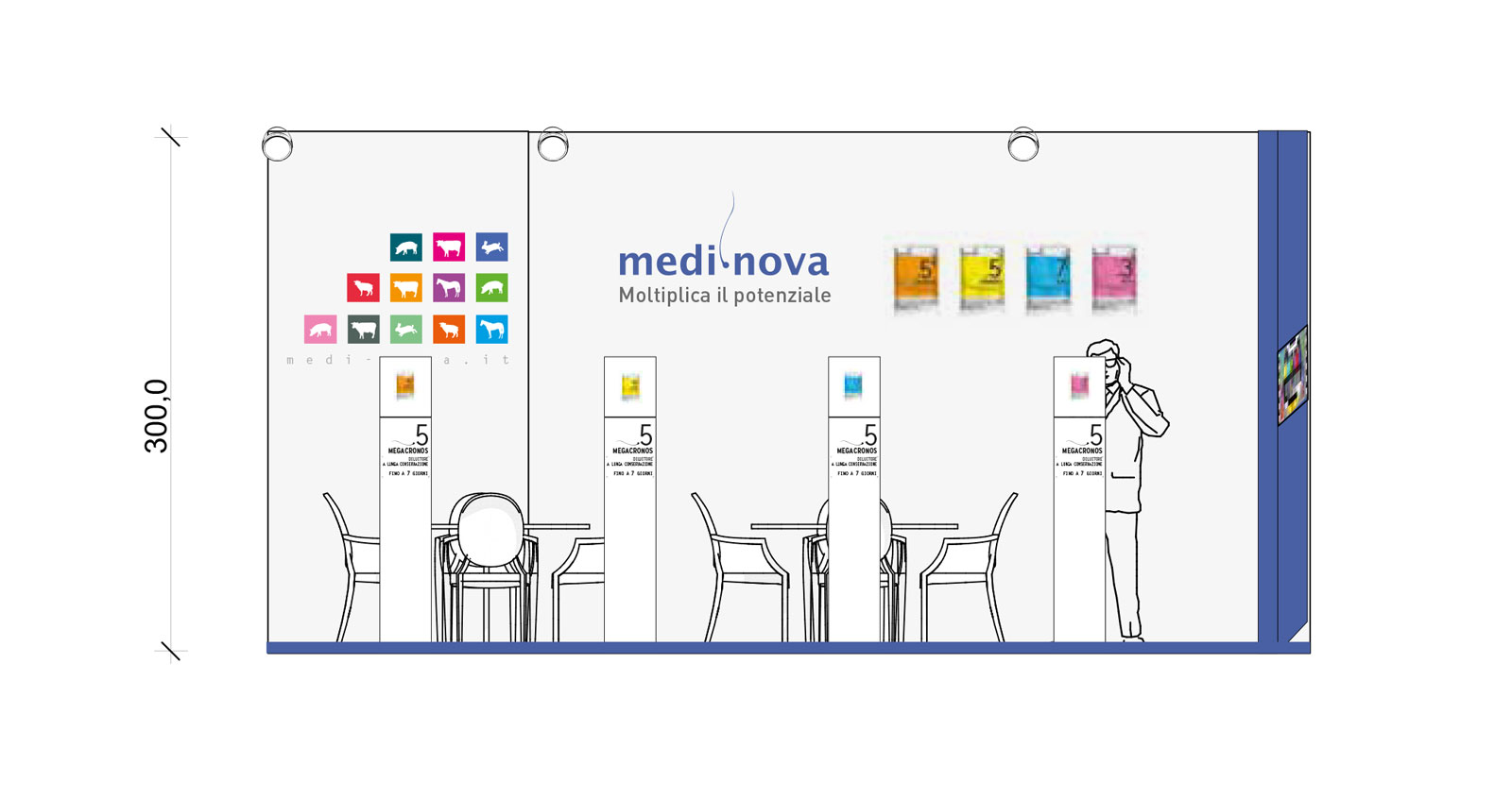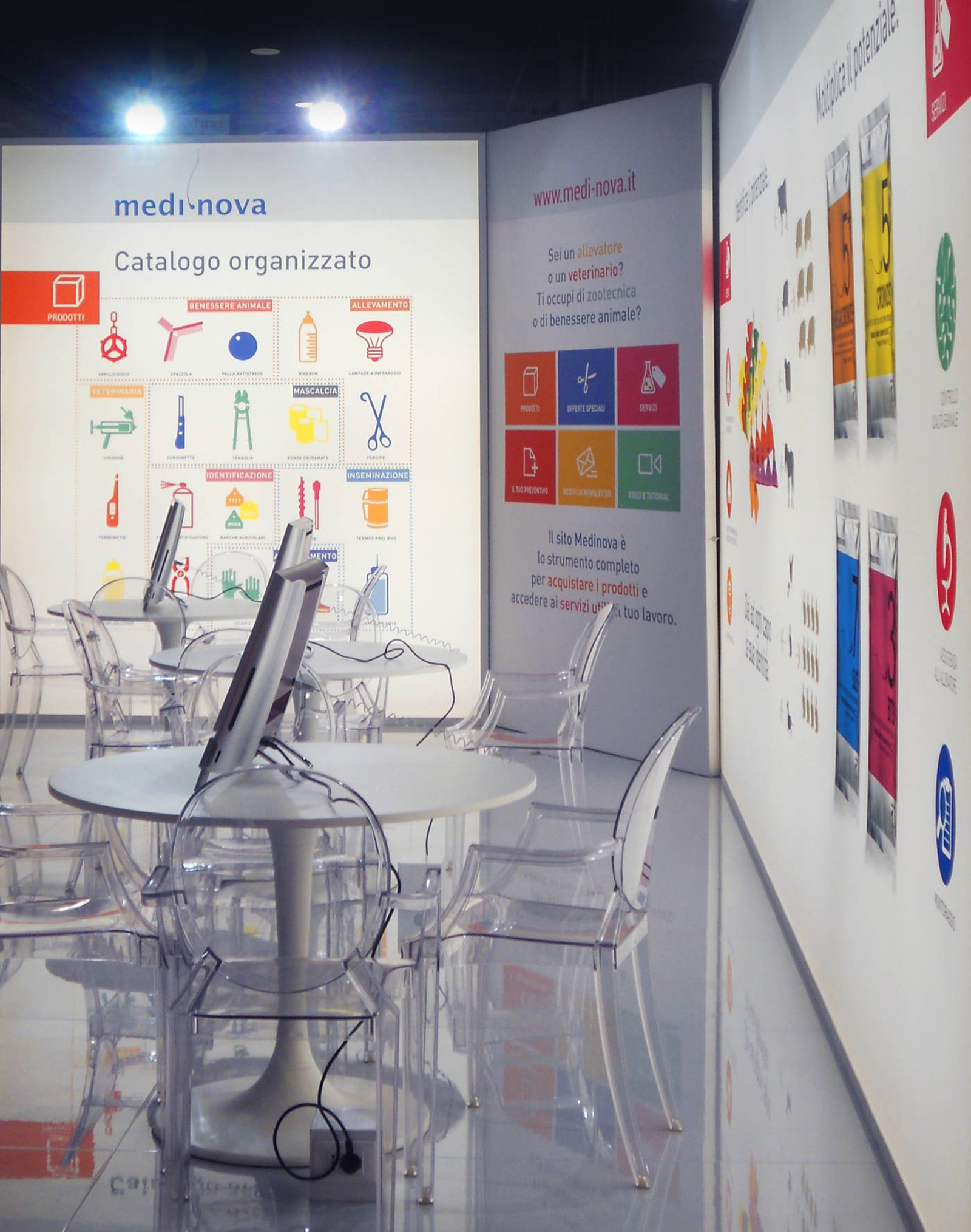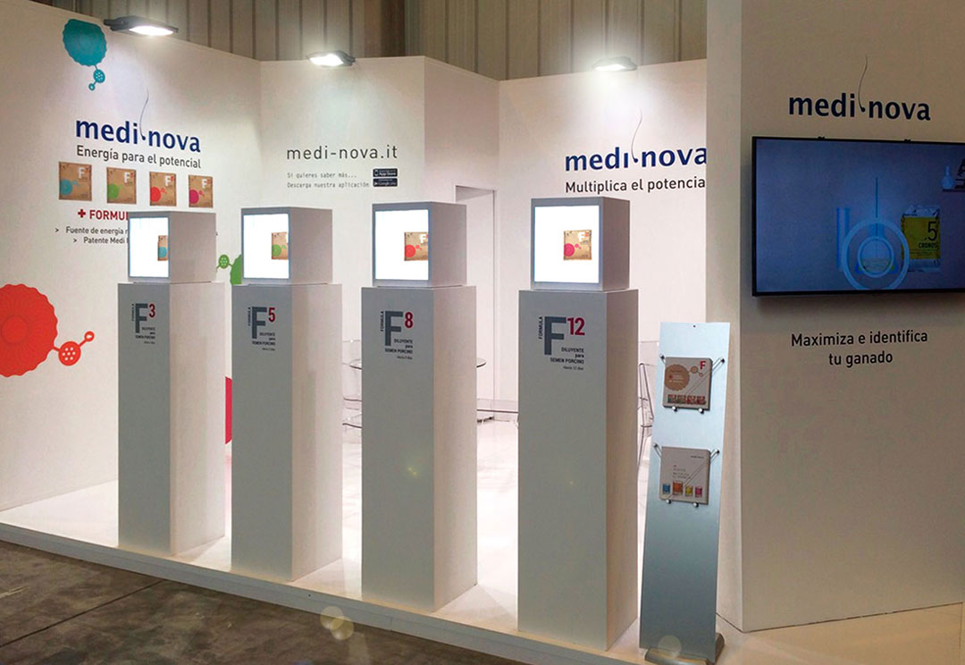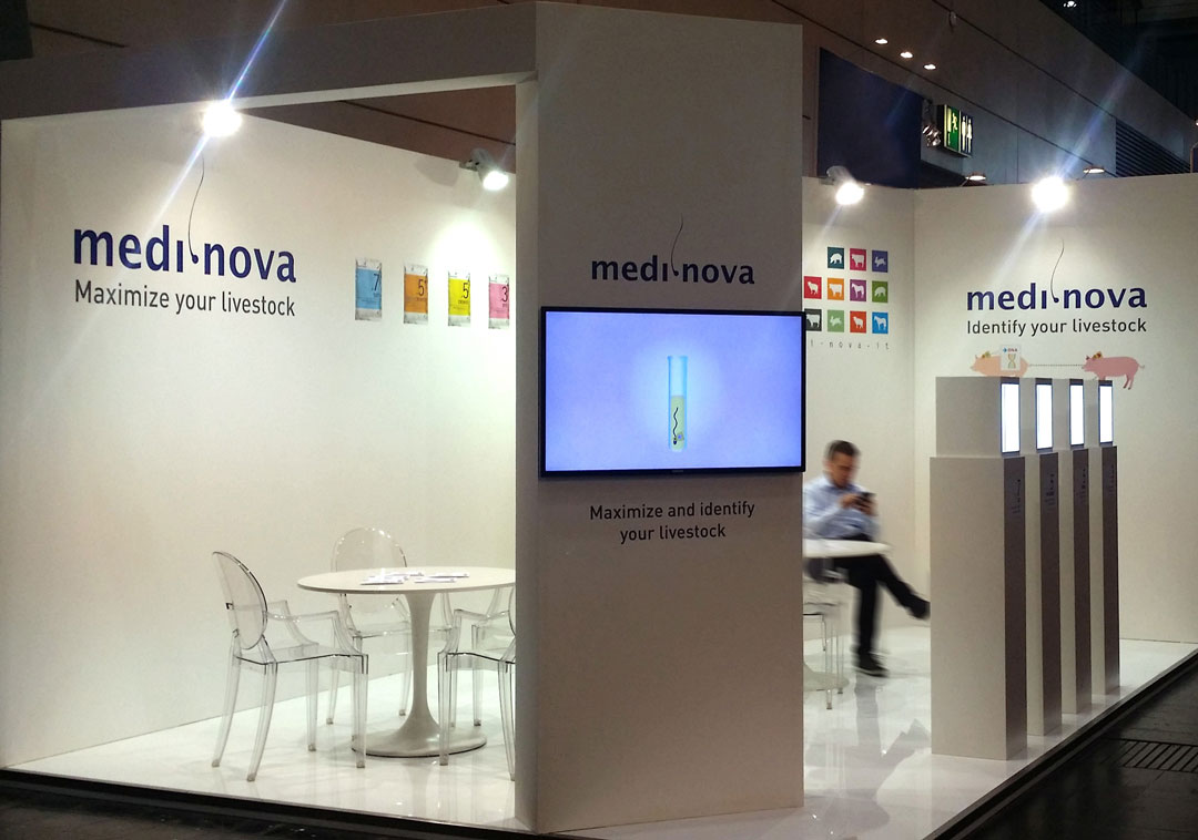 Zootecnia e veterinaria sono le specialità di Medi Nova che ci ha affidato lo studio del packaging dei suoi prodotti di punta e delle company profile. Abbiamo curato il progetto del sistema di icone utilizzato anche nel catalogo generale e nella grafica ambientale, oltre al design di diversi spazi fieristici tra cui Figan 2015 a Saragoza, Euro Tier 2014 ad Hannover ed Exhibition Center 2013 a Cremona.