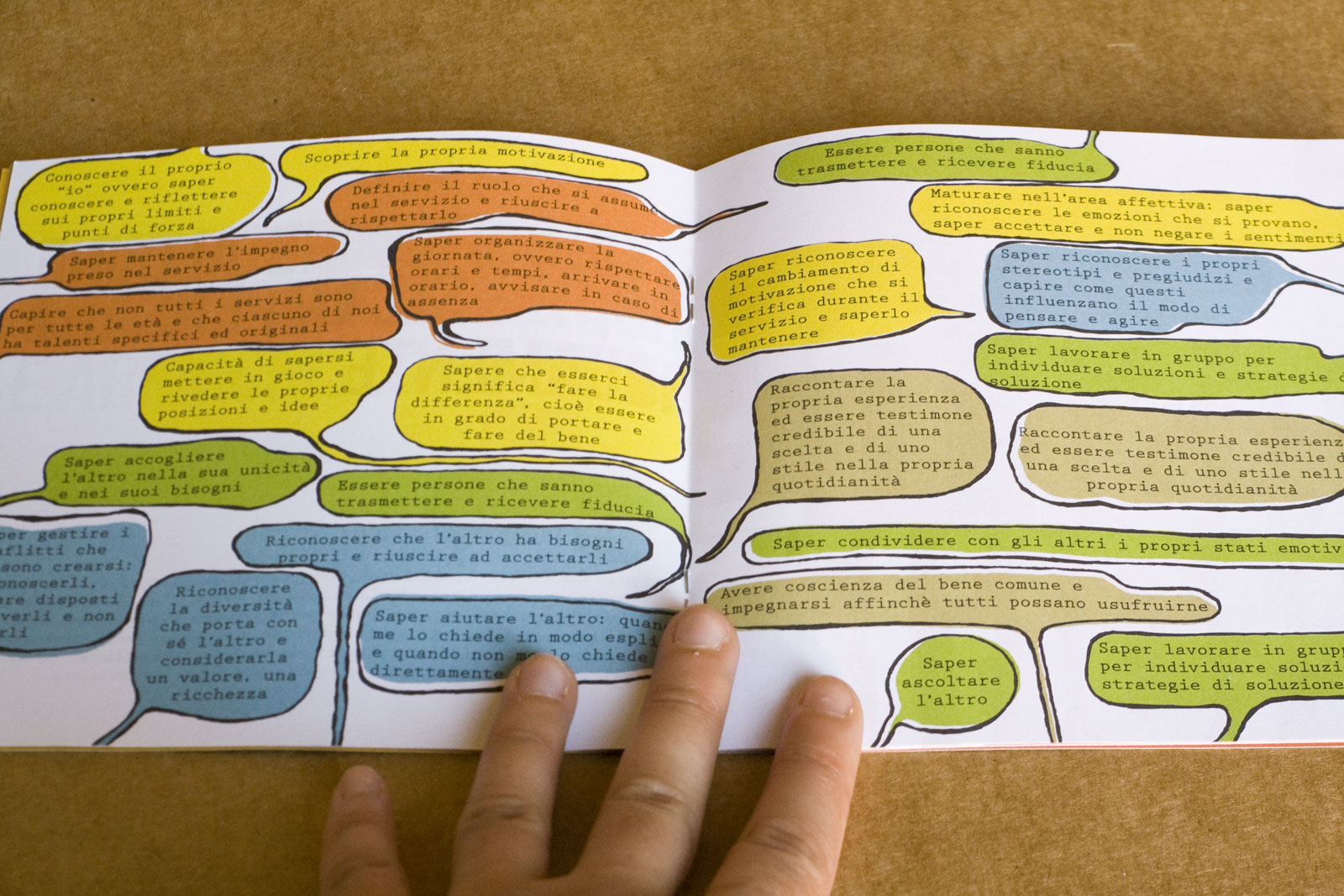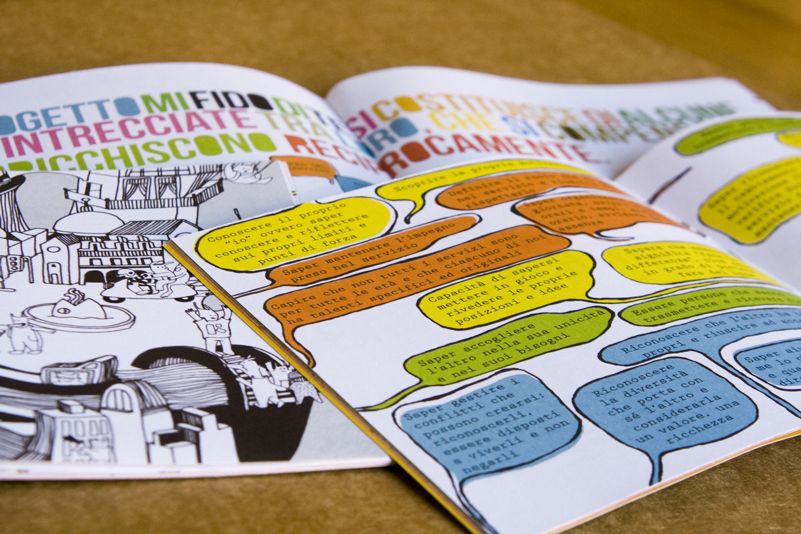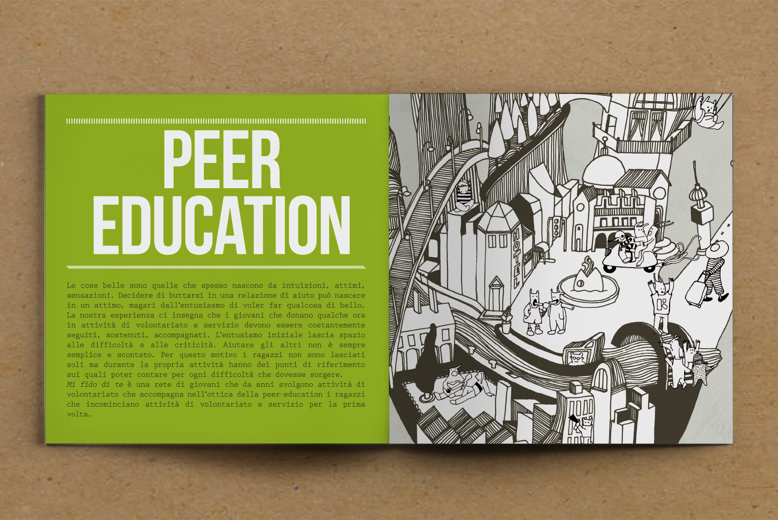 Mi fido di te è un progetto di educazione al volontariato e alla solidarietà per ragazze e ragazzi, è una rete di persone fatta di incontri, relazioni ed attività di aiuto e sostegno. Non è scontato chi deve fidarsi di chi: chi aiuta e chi riceve aiuto? Il concept del logo mette al centro il dialogo e lo scambio che stanno alla base di ogni relazione di sostegno. I materiali di comunicazione, come cartoline, flyer e vademecum tascabili, sono abitati da discorsi, opinioni, esperienze, ma soprattutto da personaggi illustrati che vivono nel mondo del volontariato.