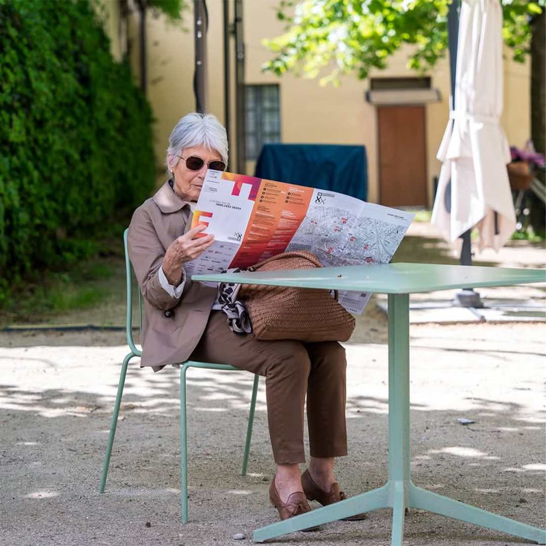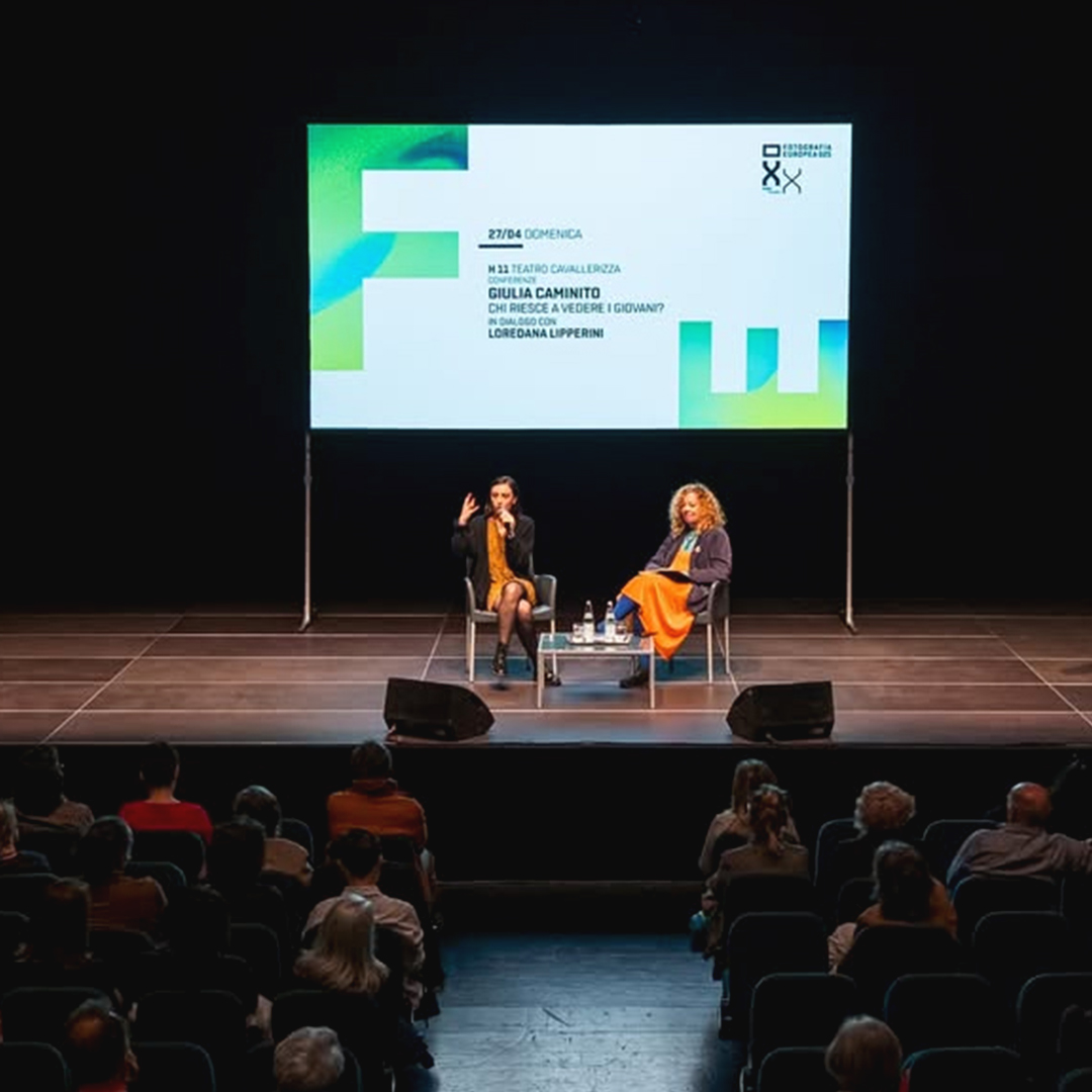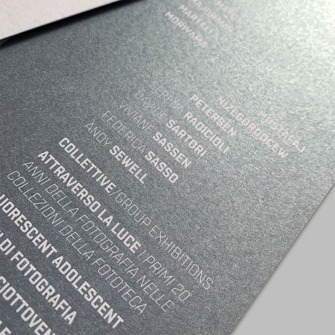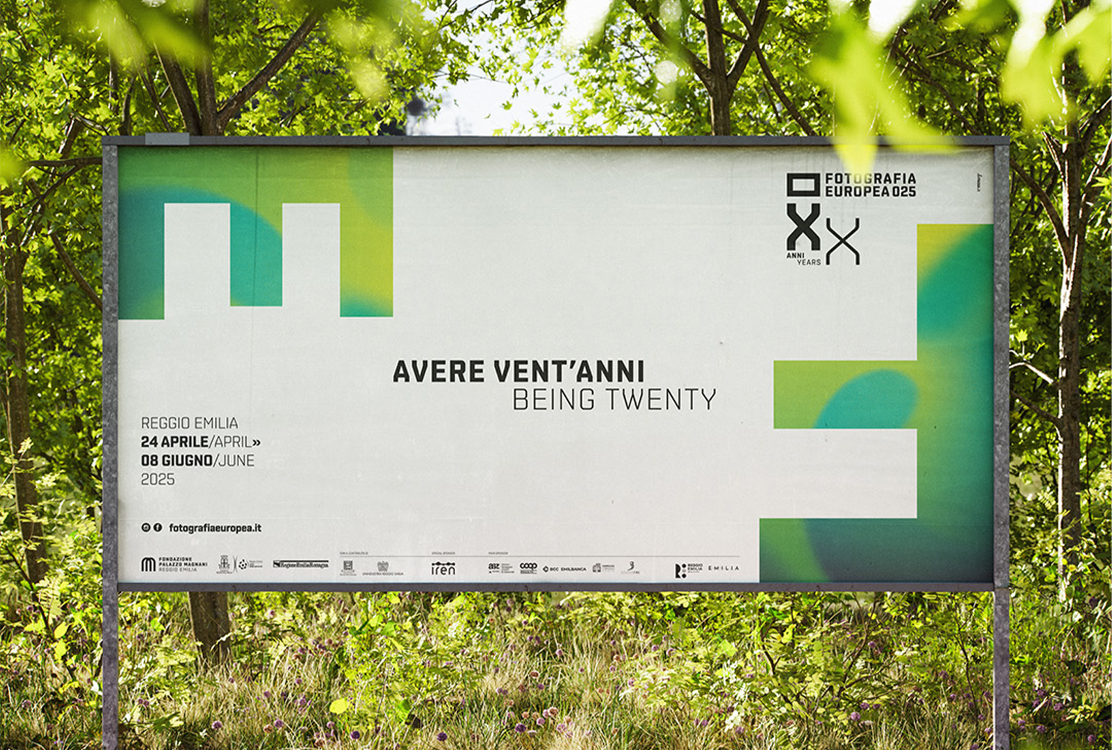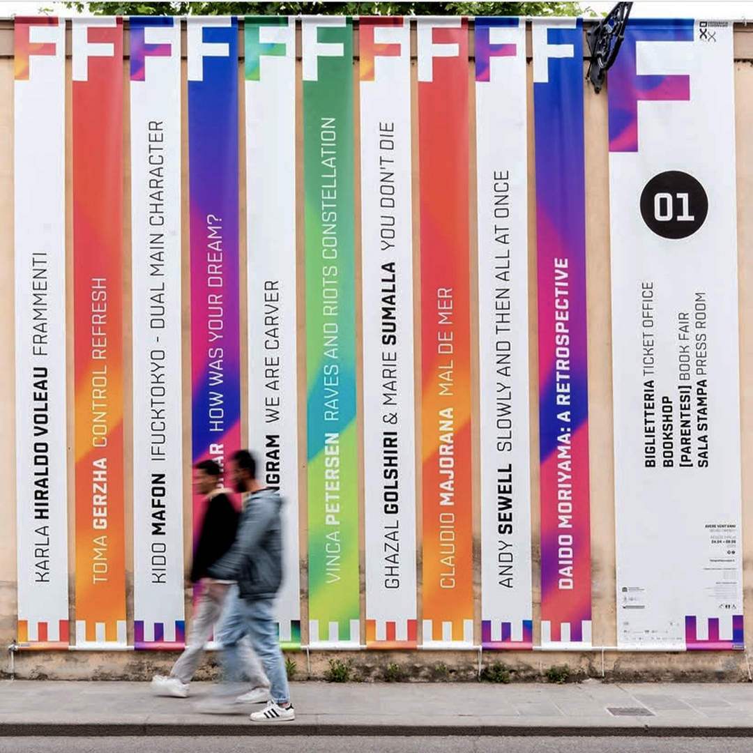 L’immagine dell’edizione del ventennale di Fotografia Europea è una pagina bianca inquadrata da sfumature cangianti, la F e la E sono libere di spostarsi, di cambiare il punto di vista. La grafica interpreta il titolo, si libera dell’immagine per evocare lo sguardo di una generazione che vive l’intensità del presente e l’incertezza del futuro, senza dare un’interpretazione univoca, mettendosi in ascolto per accogliere l’inaspettato.